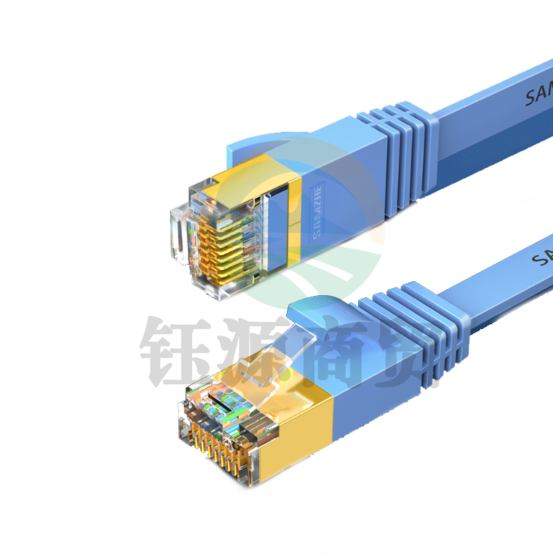 山泽(SAMZHE)CAT-708B七类扁平网线蓝色(镀金头)8米