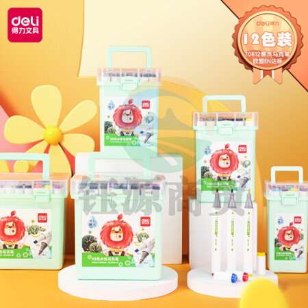 得力70812-12易洗水性三角杆马克笔(混)(12色/桶)