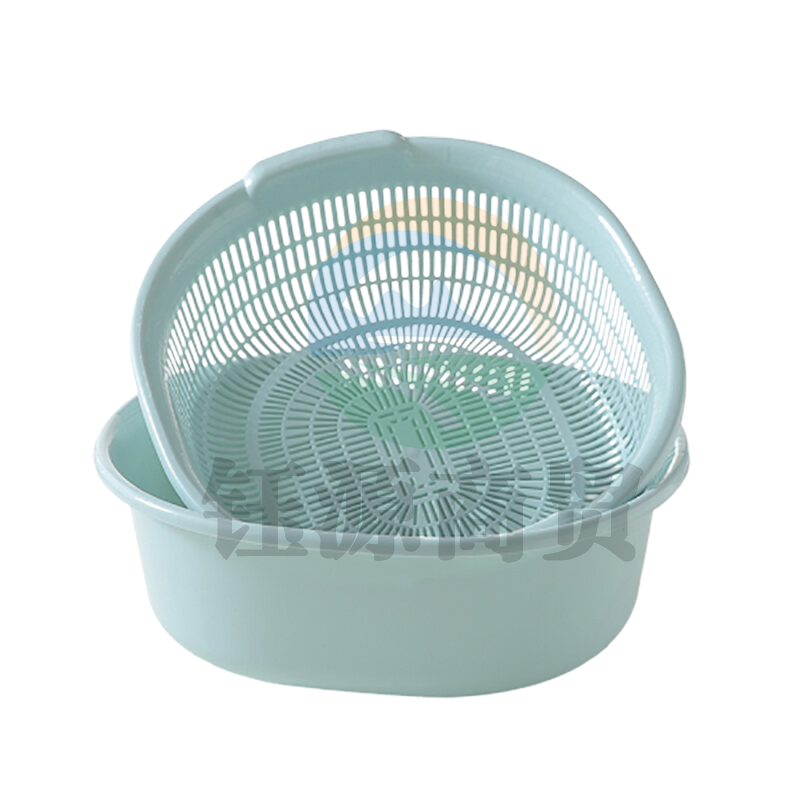 雅高 沥水篮 双层大号洗菜篮 厨房多功能圆形加大号洗菜盆子水果篮 蓝色 YG-C043