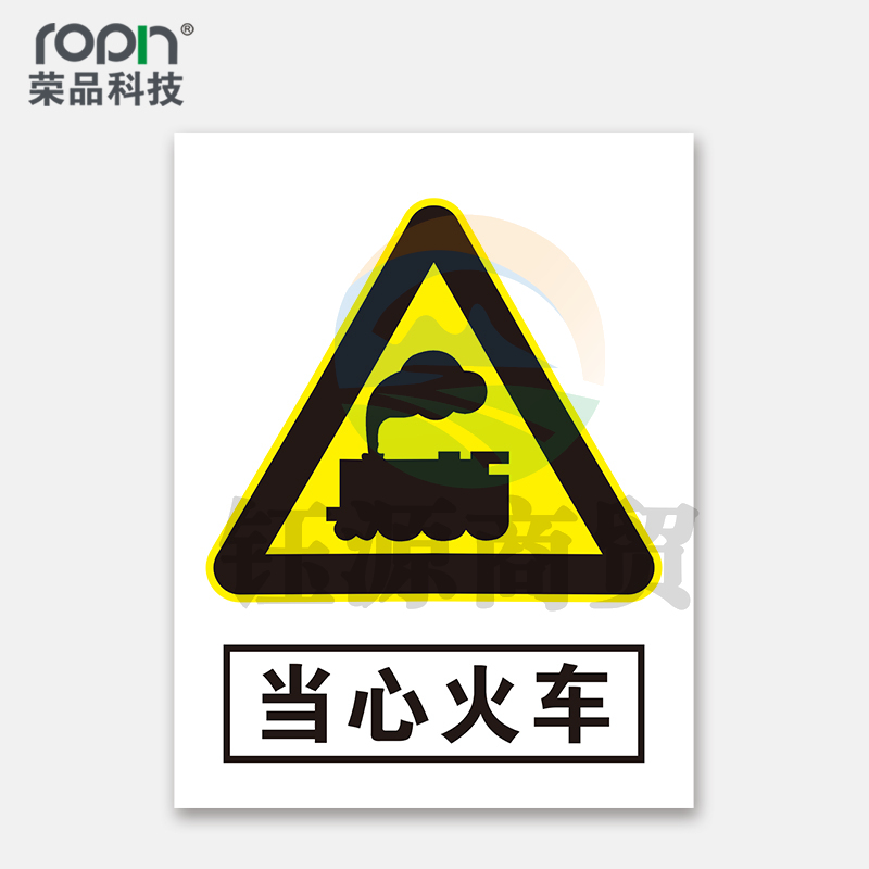 荣品 PVC当心安全国标警示标识牌验厂安检检查警示牌温馨提示标贴自带背胶订做定制 当心火车 300×390mm