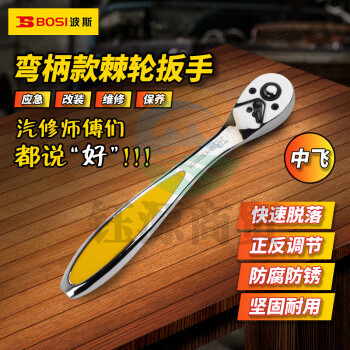 波斯(BOSI)10MM系列弯柄棘轮扳手中飞套筒扳手汽修快速扳手 BS361738