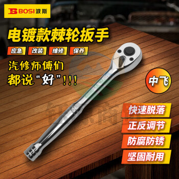 波斯(BOSI)10MM系列电镀棘轮扳手中飞套筒扳手汽修快速扳手 BS361328