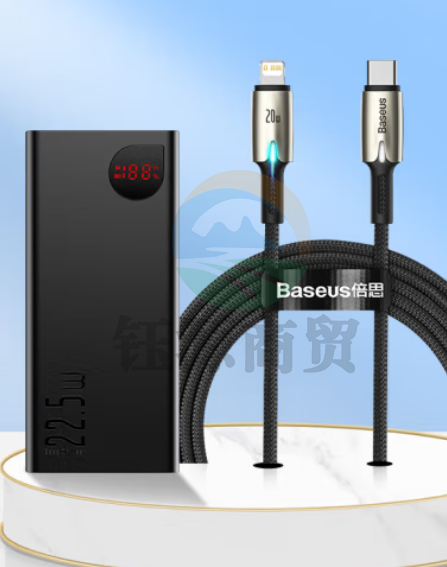 倍思 22.5W超级快充20000毫安时+ PD快充苹果数据线适用于iPhone14/13/12ProMax手机ipad