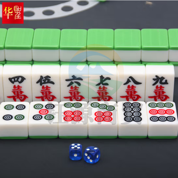 华圣麻将牌42mm升级版特一级H-001 墨绿色家用手搓大号144张 桌布