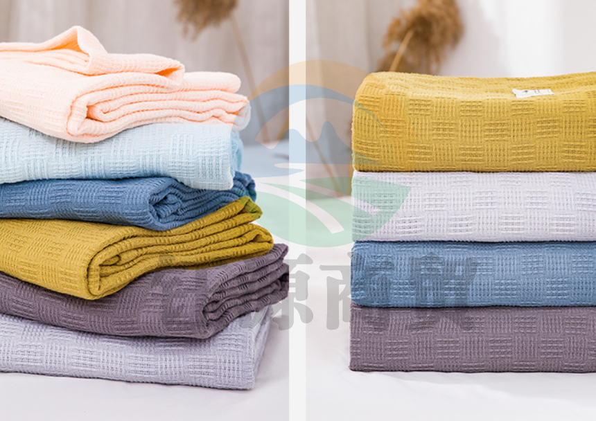 沐凡 毛巾被 纯棉盖毯 全棉纱布毛巾毯 双层镂空被-姜黄100*150cm