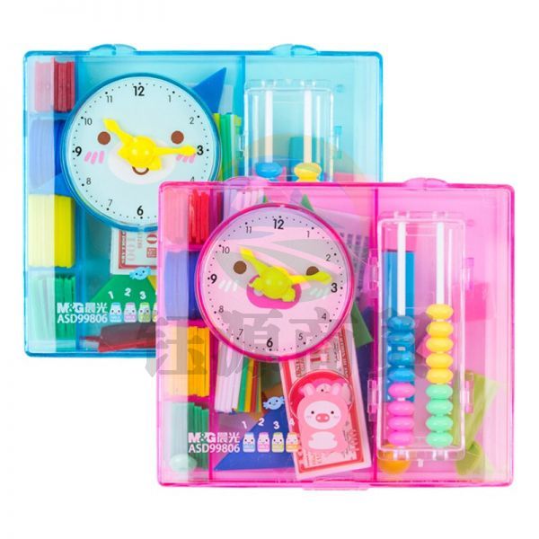 晨光ASD99806四方形智力学具 颜色随机 小学生认知学习教具(小棒数数/珠子计数器+几何图形+时钟+认知卡等)