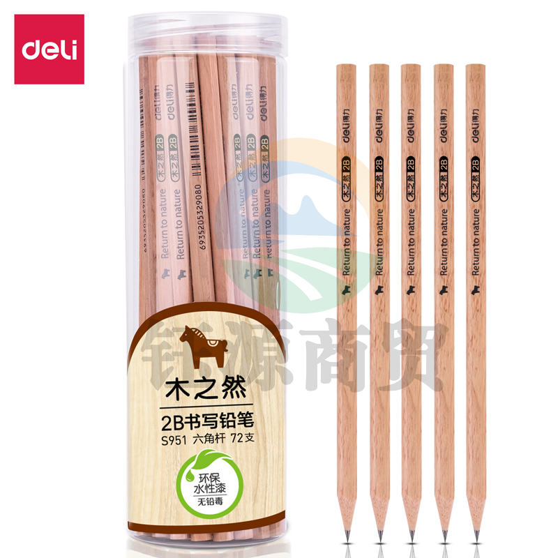 得力S951-2B书写铅笔(原木色)(72支/筒)
