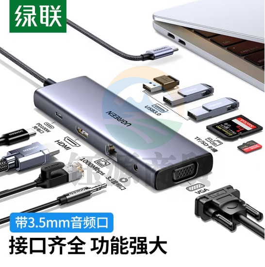 绿联15601 Type-C扩展坞 雷电3/4拓展坞USB-C转HDMI转换器网线转接头3.5音频口 通用笔记本十合一