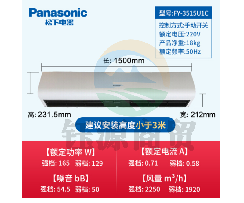 松下FY-3515U1C风幕机 风帘机自然风 1.5米 适用3米门高