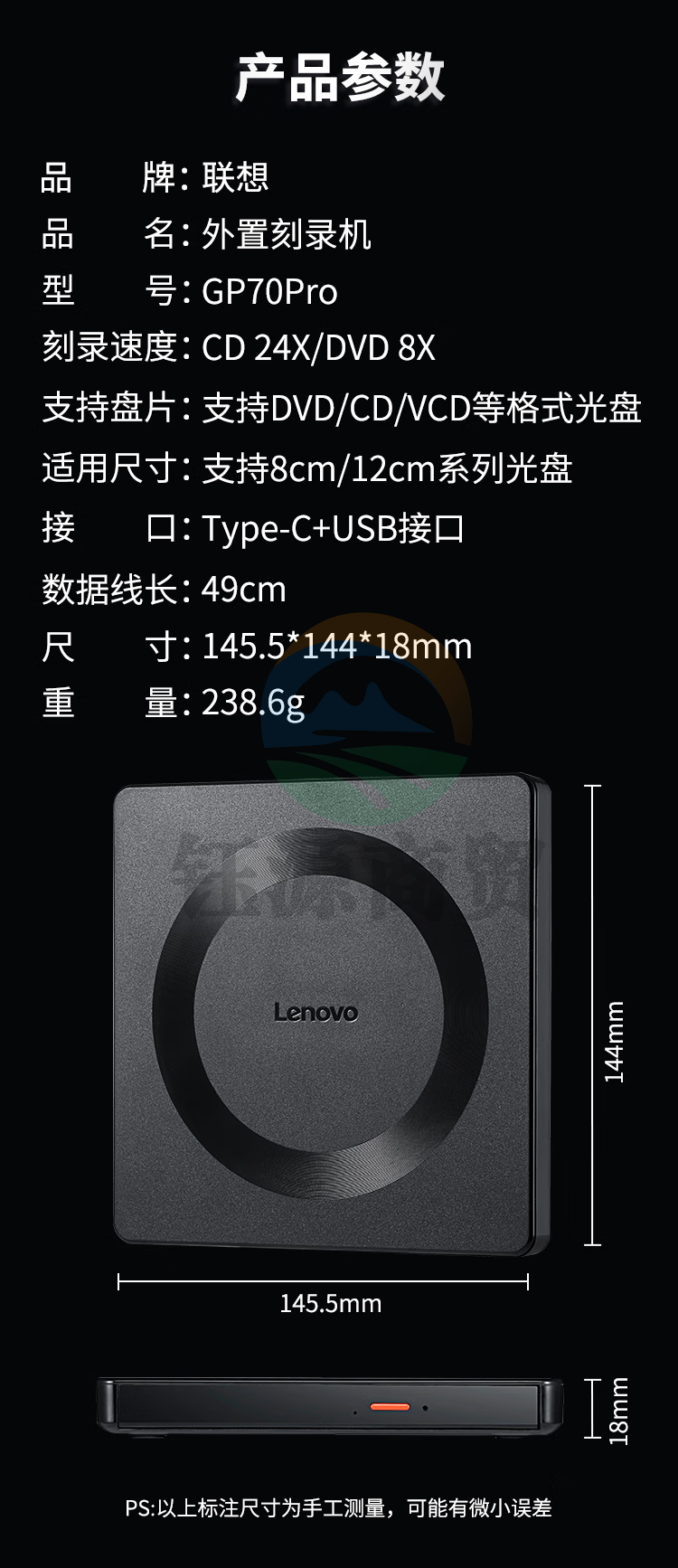 联想(Lenovo)8倍速USB外置光驱刻录机 DVD光驱外置 移动光驱 笔记本电脑台式机便携外接光驱GP70Pro