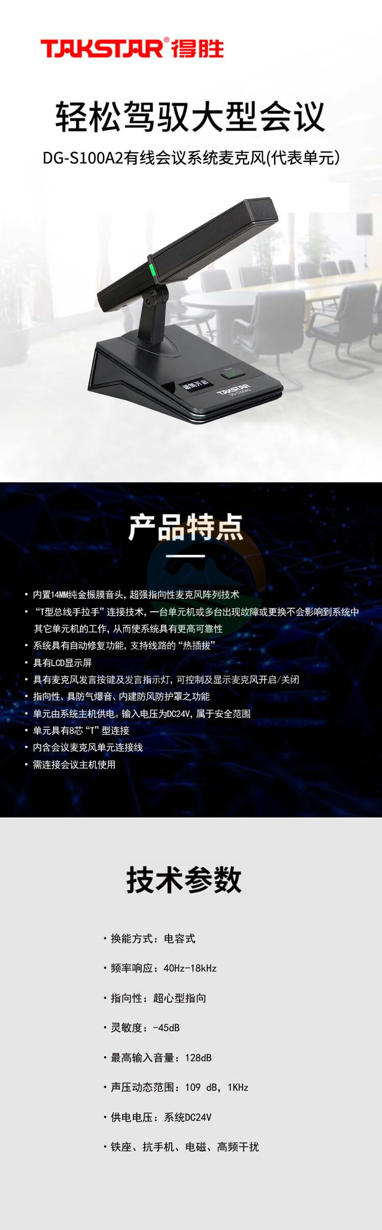 得胜 (TAKSTAR)DG-S100A2有线手拉手会议系统 代表单元 桌面式麦克风话筒