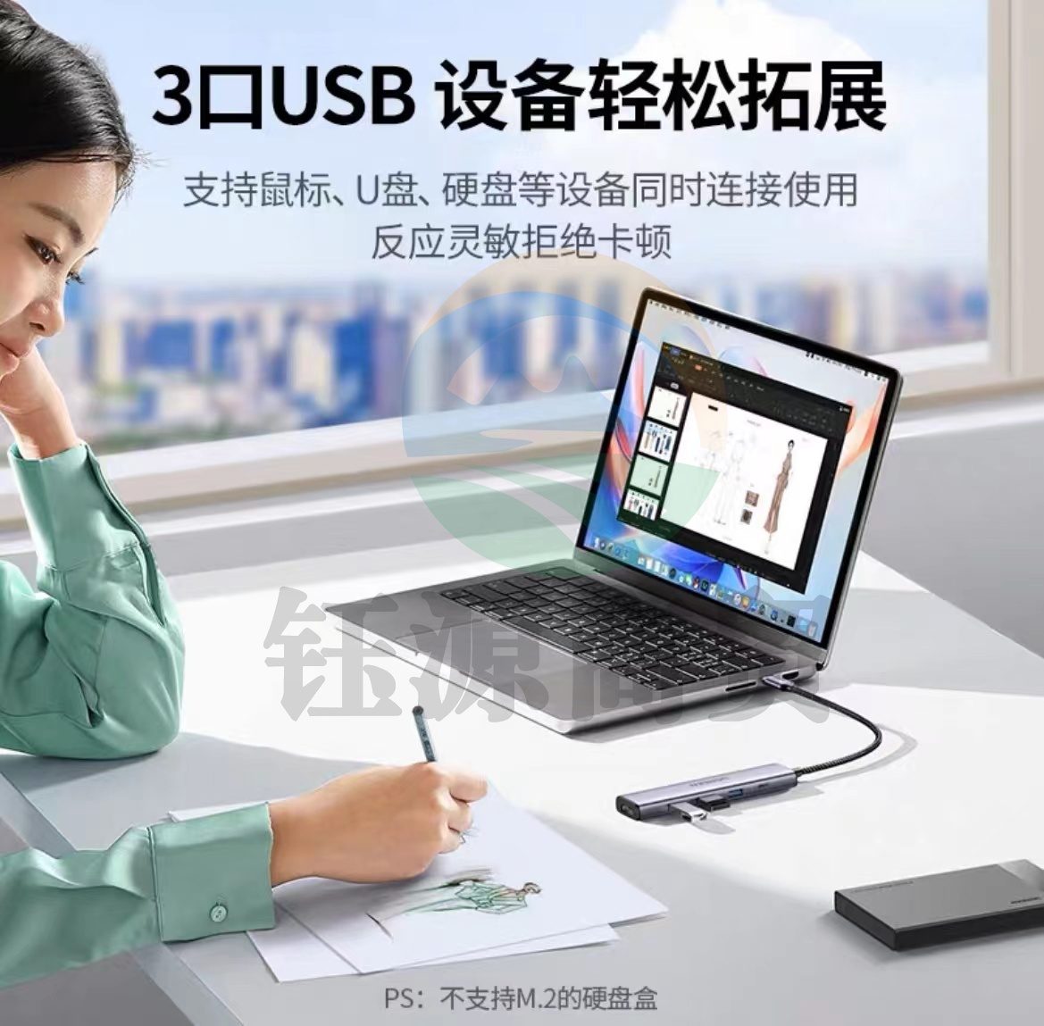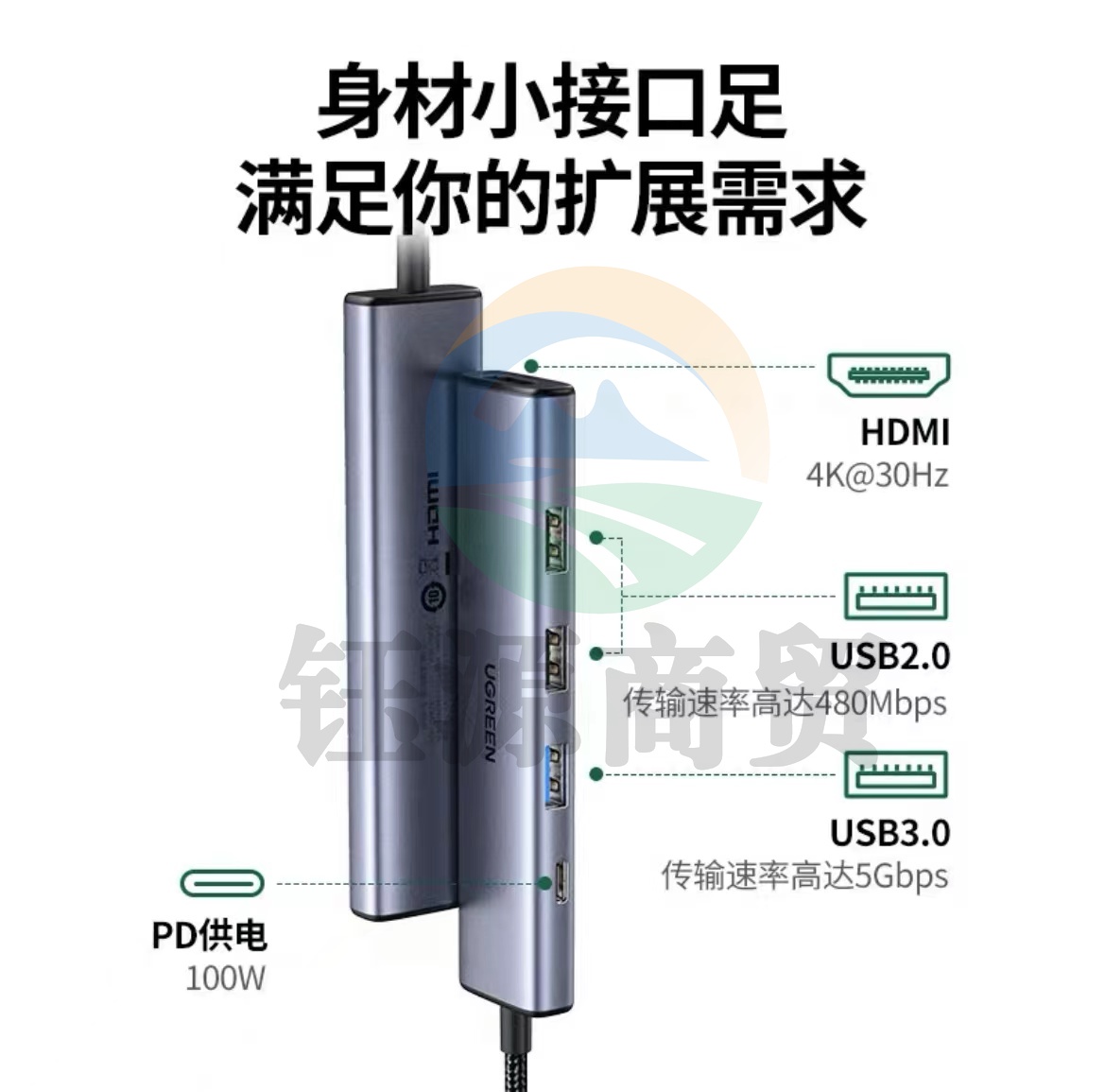 绿联(UGREEN)15495 数据线 多功能扩展坞5合1USB-C转HDMI转接头支持Windows/MacOS高清投屏