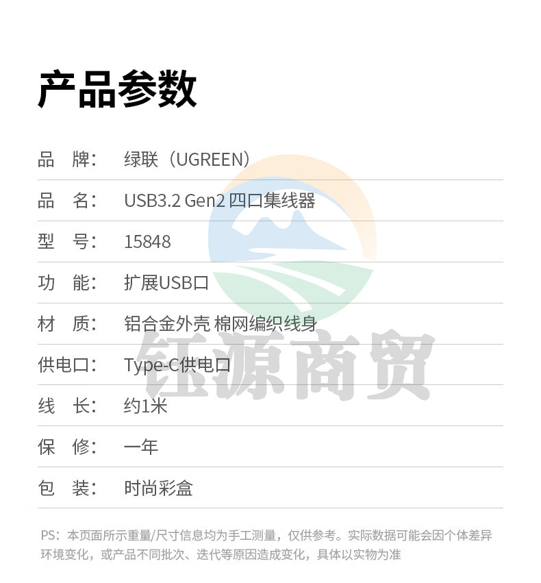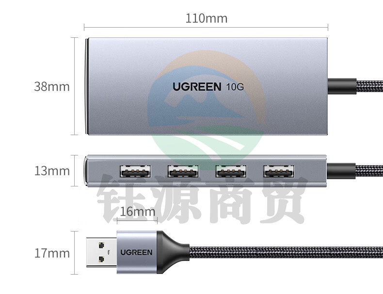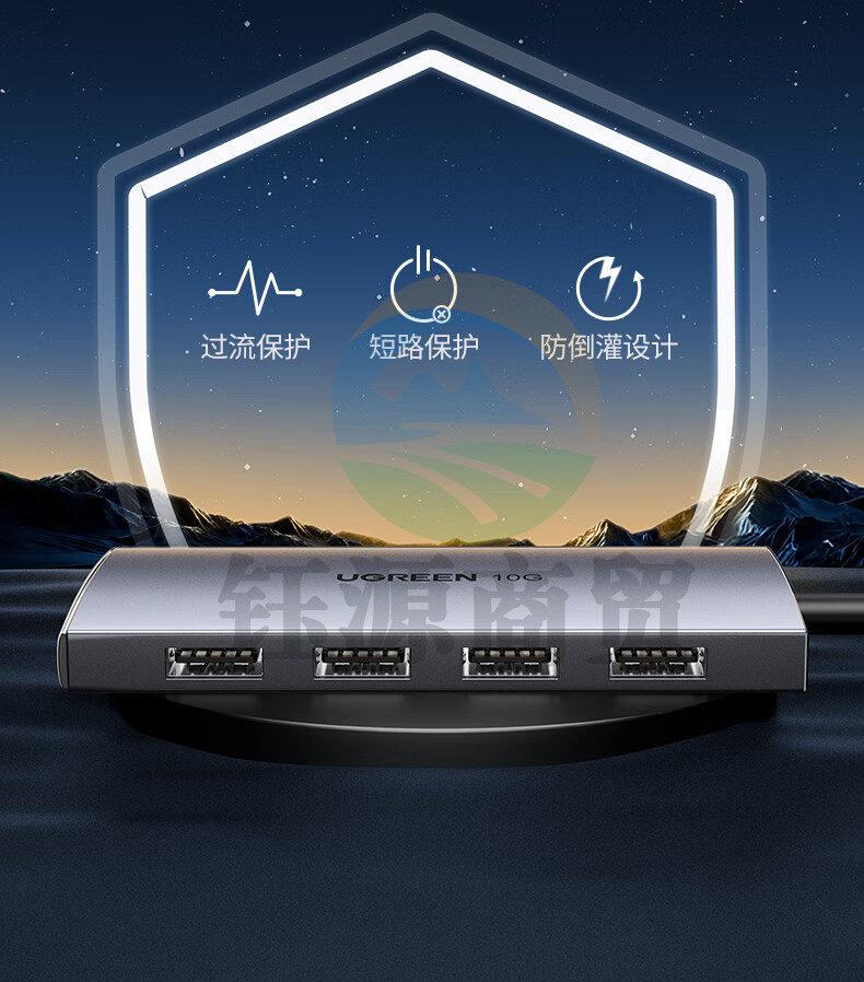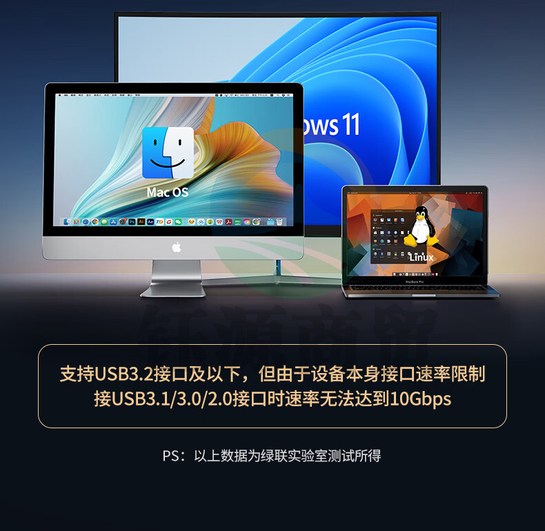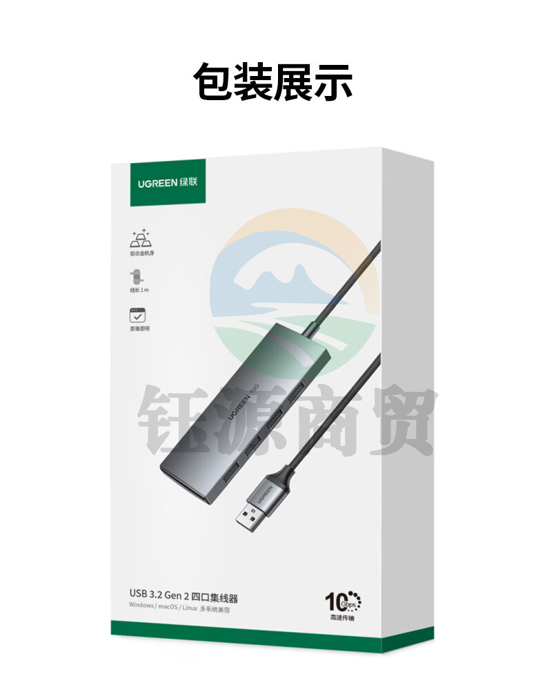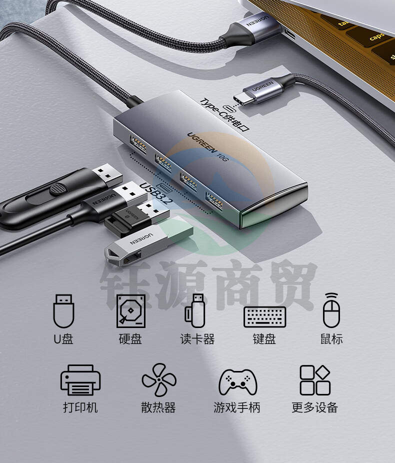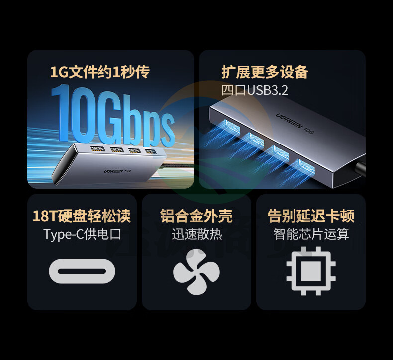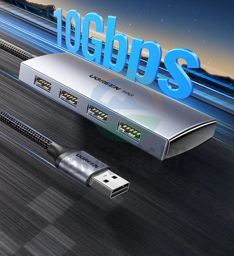 绿联 USB3.2分线器 10Gbps扩展坞 3.2Gen2高速4口拓展坞集线器HUB 笔记本台式电脑一拖四延长线转换器 15848