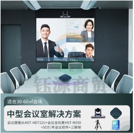 好视通中型会议室标准集成解决方案(50方公有云会议软件+712U摄像头+M350全向麦克风)适用30-60㎡会议室