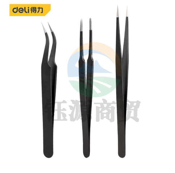 得力DL396003 不锈钢镊子3件套 弯头镊子+平头镊子+尖头镊子