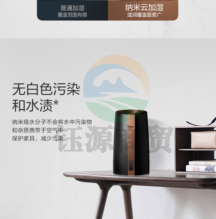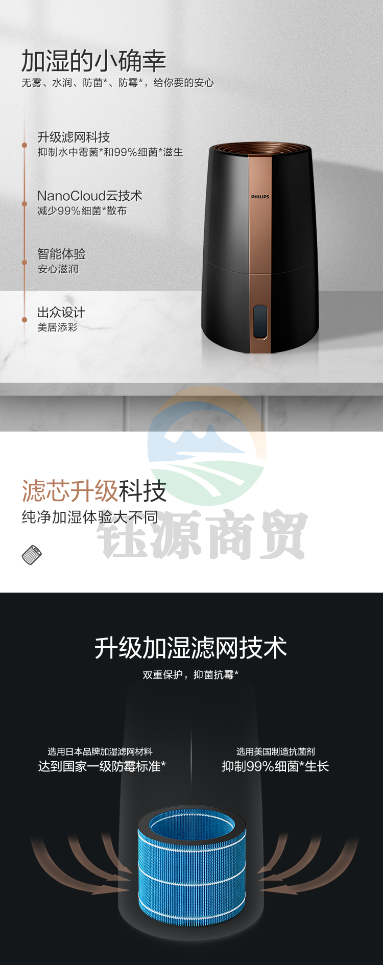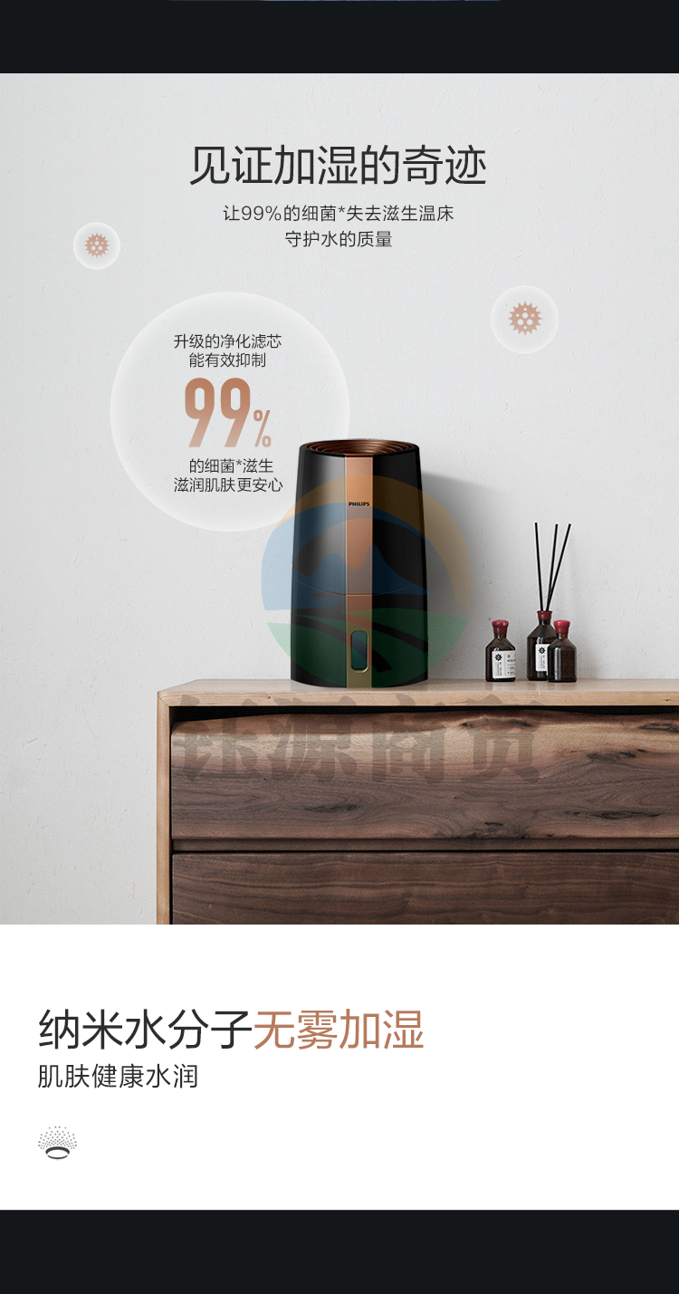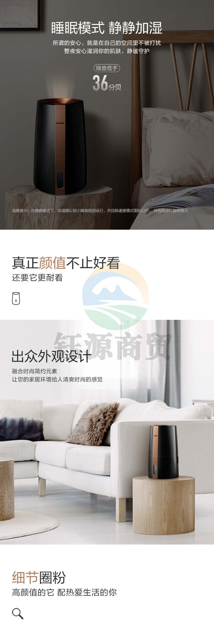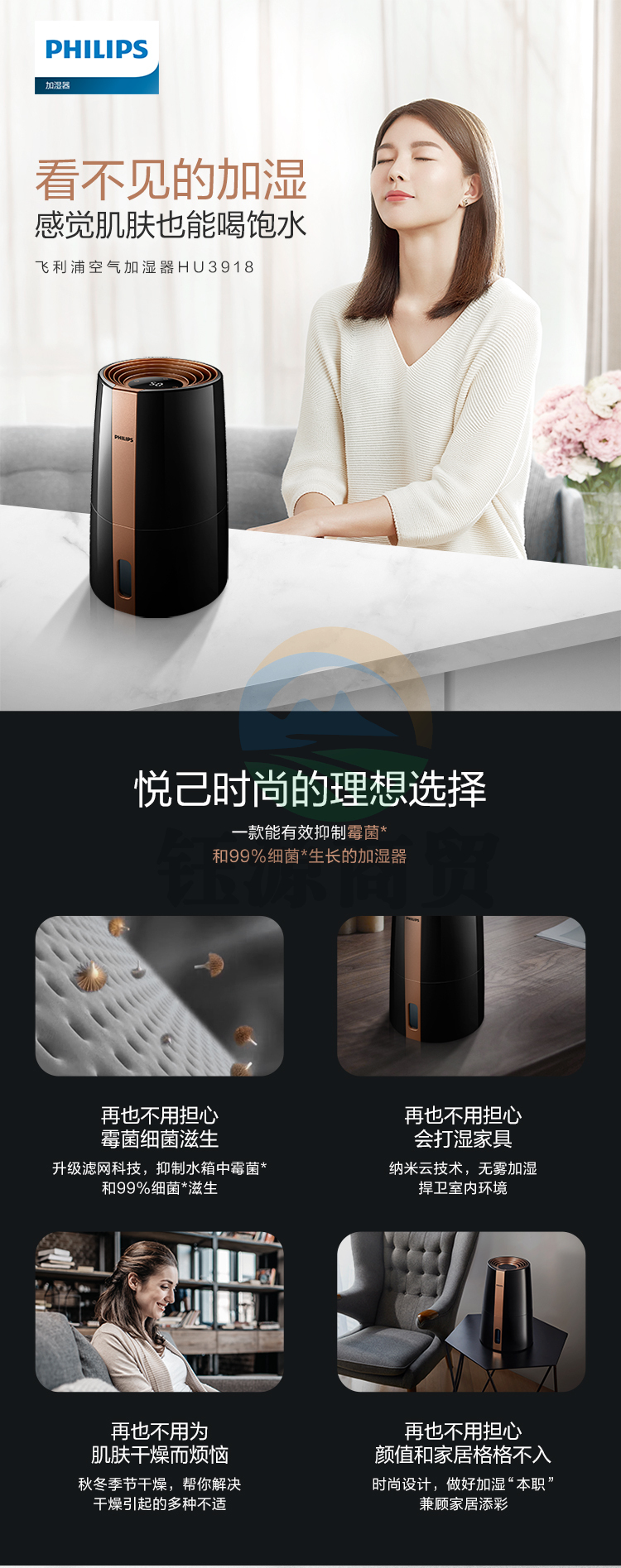 飞利浦(PHILIPS)HU3918/00 加湿器自动湿度设置 纳米无雾恒湿功能 静音卧室办公室