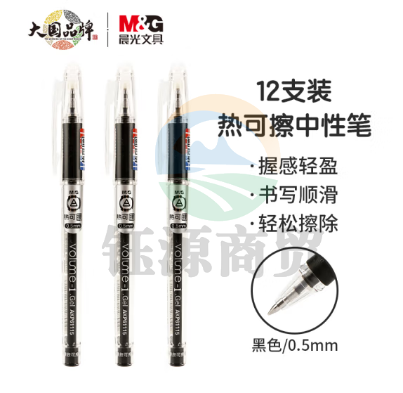晨光陶瓷球珠中性笔热可擦AKP61115黑0.5 12支/盒装