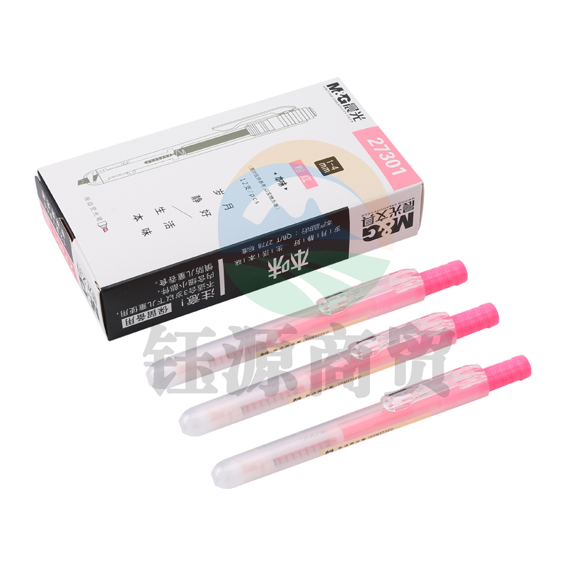 晨光(M&G)本味按动单头记号笔荧光笔12支/盒袋粉红色 AHM27301