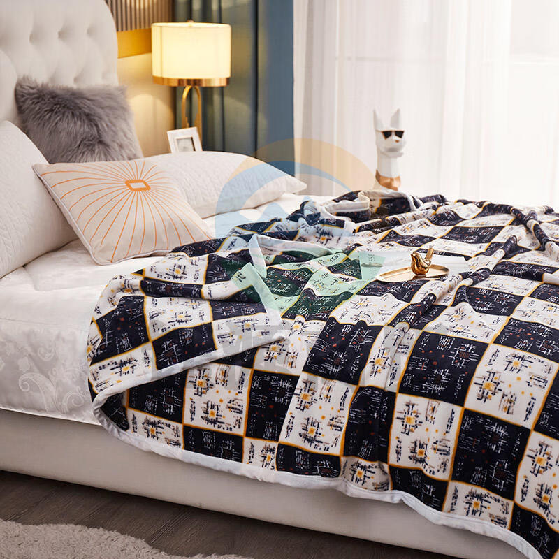 北极绒 雪貂绒毯 法莱绒珊瑚绒盖毯保暖毯子120X200cm 黑白配