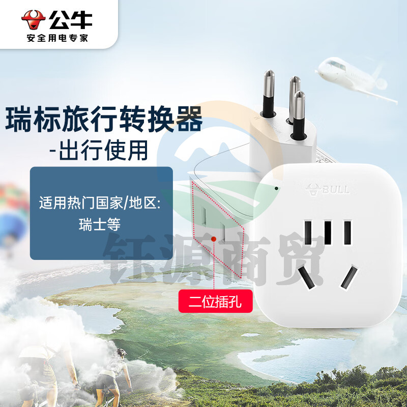 公牛(BULL)2位瑞士标转国标 电源转换器插座适合国外使用(瑞士 卢旺达等) GN-L01W