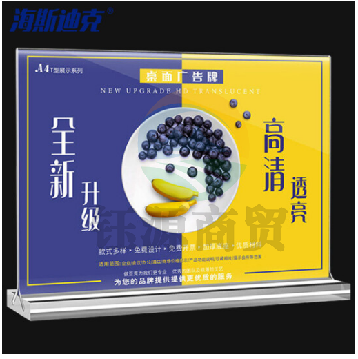海斯迪克 HKW-344 亚克力展示牌 双面桌牌台卡广告牌 台签台卡架摆台定制 水晶抽拉横款(90×128mm) 3个价