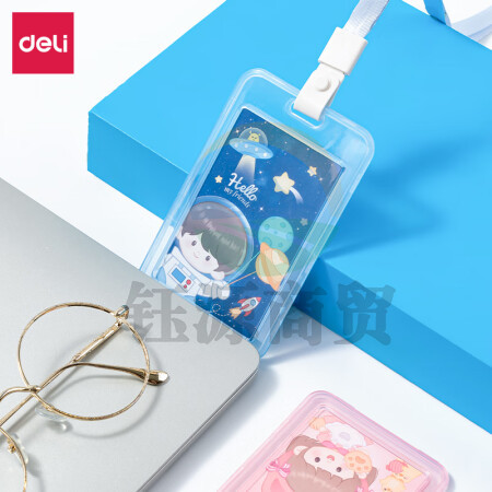 得力(deli)PZ104 竖式证件卡套 员工证学生证卡套 棉挂绳 单只装混色