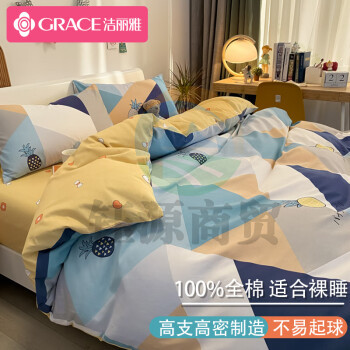 洁丽雅全棉四件套 纯棉被套床单家用被罩床上套件 菠萝多多1.5/1.8米床