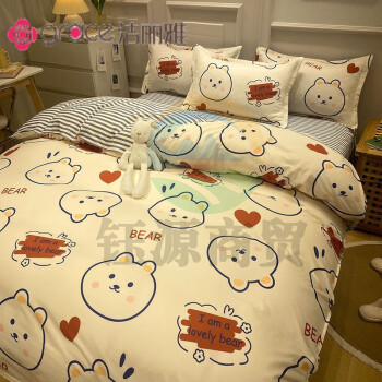 洁丽雅(grace)床上四件套被套床单被子四季通用单人宿舍床三四件套网红款 小可爱 2.2米床【1床单+1被套+2枕套】