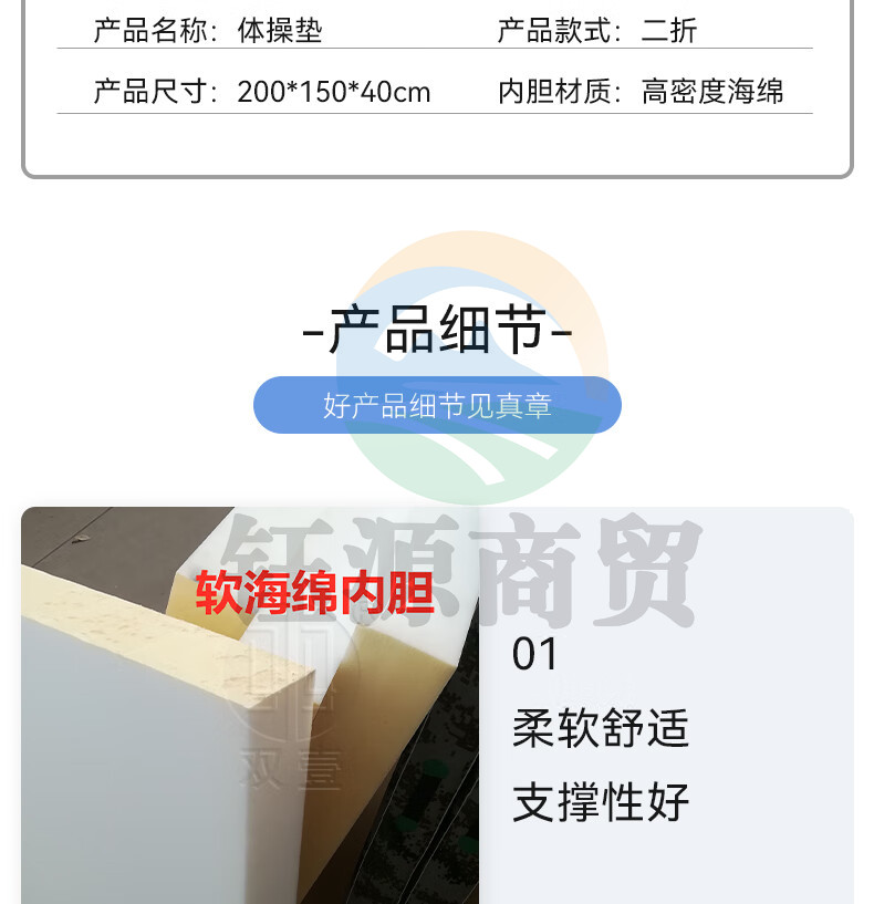 双壹 体操垫仰卧起坐垫叠军绿色保护垫 2*1.5*0.4m 高密度海绵 有机硅防水帆布 海绵密度35 二折200*150*40cm