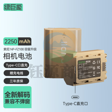 绿巨能(llano)索尼FZ100相机电池a7m3直充电池a9/a7r3/a7s3/a7m4/a6600微单单反电池Type-C接口2250mAh LJN-SM084