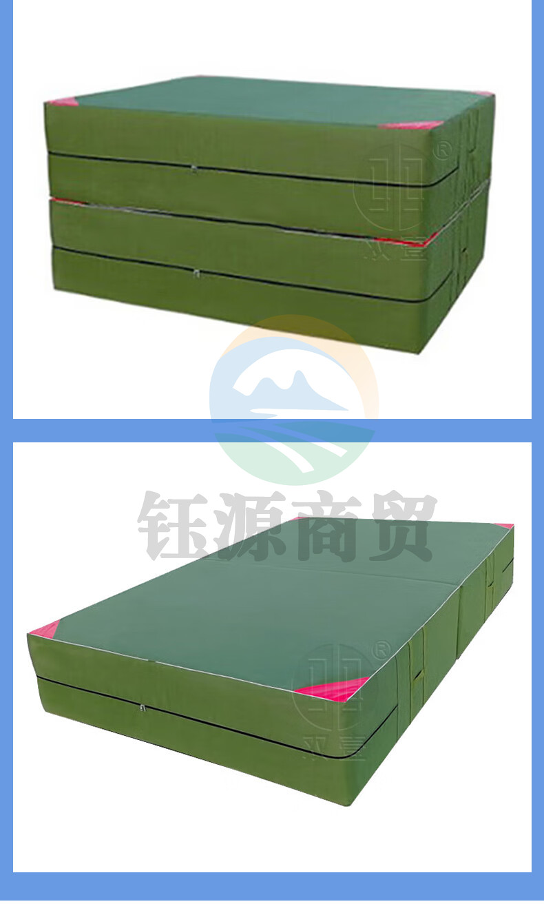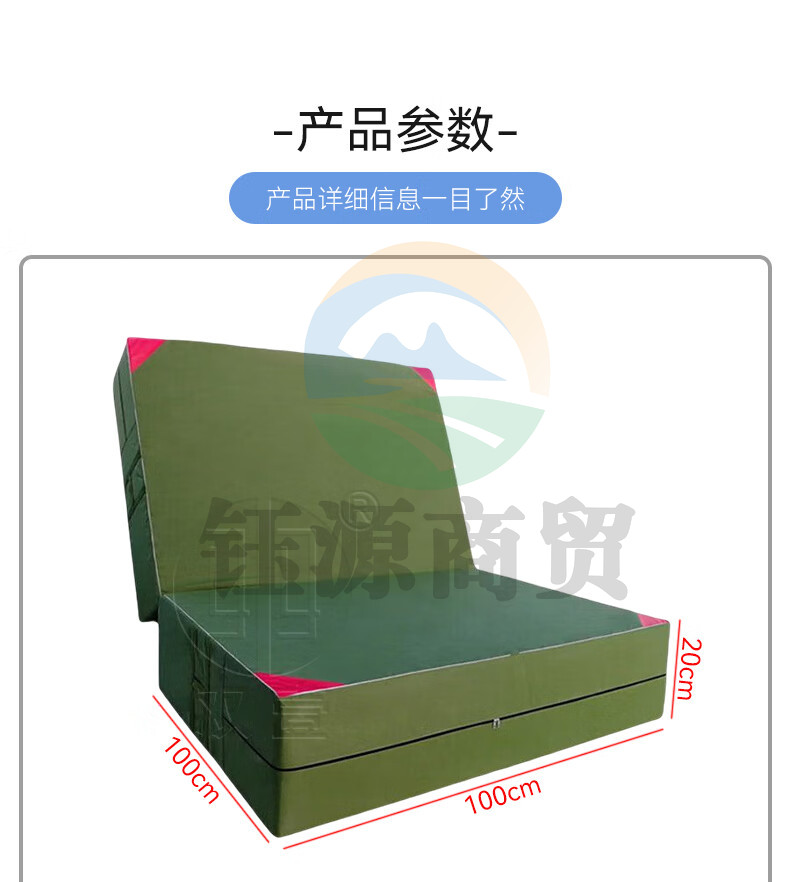 双壹 体操垫仰卧起坐垫叠军绿色保护垫 2*1*0.2m高密度海绵 有机硅防水帆布 海绵密度35 二折200*100*20cm