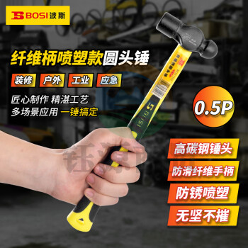 波斯(BOSI)纤维柄喷塑圆头锤防滑锤子榔头铁锤钢锤 BS351005(0.5P)