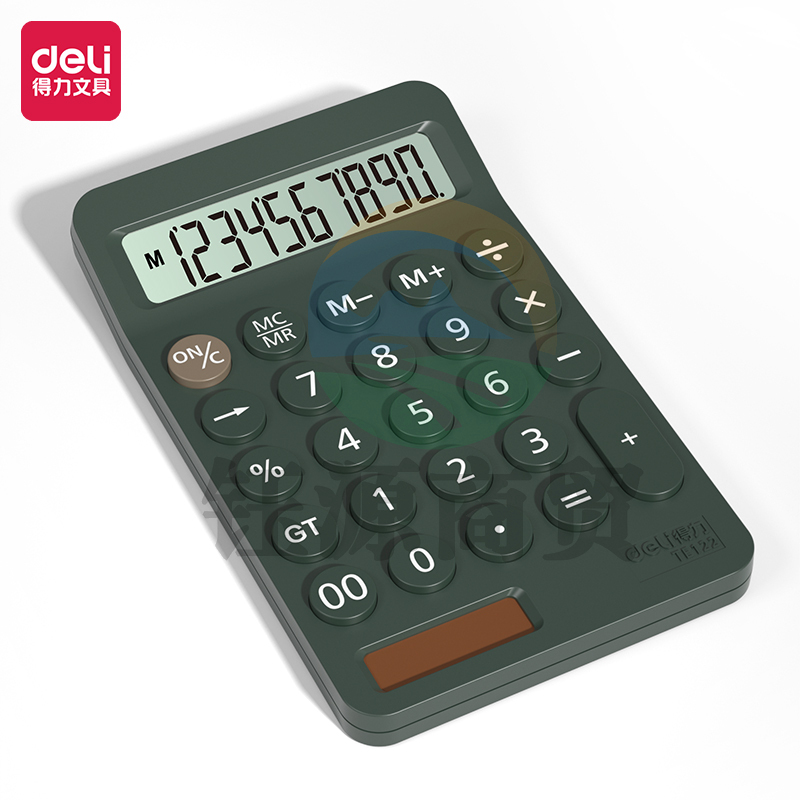 得力(deli)双电源便携款计算器 10位数宽屏桌面计算机 绿色TE122