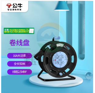 公牛(BULL) GN-806DN 过热保护漏电保护16A大功率电缆卷盘插座/插排 4位50米线粗2.5MM2工程专用