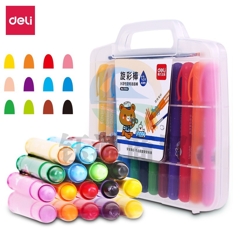得力72104_PP盒装水溶性旋彩棒(混)(12色/盒)