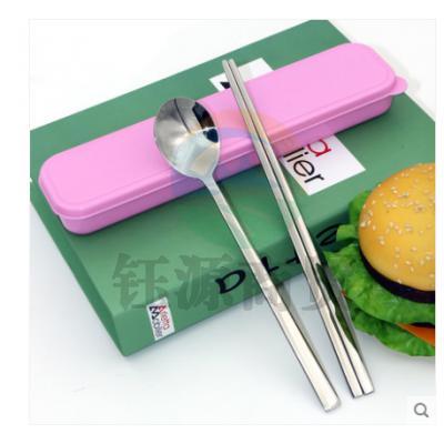 津御商厨YC-3M实心304不锈钢筷子勺子套装 5套/组 学生便携餐具盒旅行筷勺三件儿童长柄