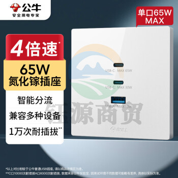 公牛(BULL)开关插座 氮化镓3USB快充65W插座86型面板 G37T207 白色