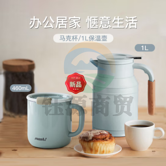 mosh 保温壶1L桌面杯460ml湖蓝色套装 DMTK1.0TU+DMLM430MT
