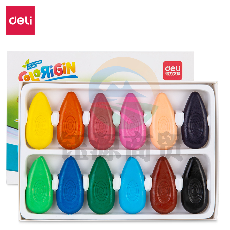 得力72074-12_12色水滴蜡笔(混)(盒)油画棒 萌趣防滑不脏手幼儿儿童涂鸦绘画画笔 美术用品套装画材文具