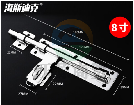 海斯迪克 HKZ-57 加厚不锈钢锁扣门扣暗插销 防火防盗门挂锁栓插销锁门扣 带扣款 8寸 4个价