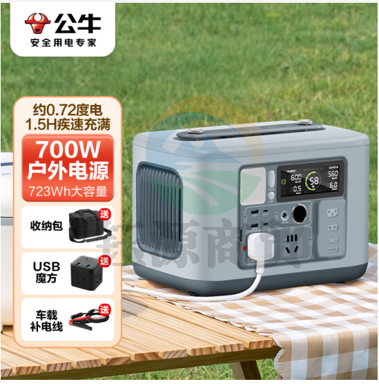 公牛快充移动户外电源220V 700W大容量大功率约0.7度电 笔记本充电宝自驾露营摆摊应急电源停电备用 晴空蓝