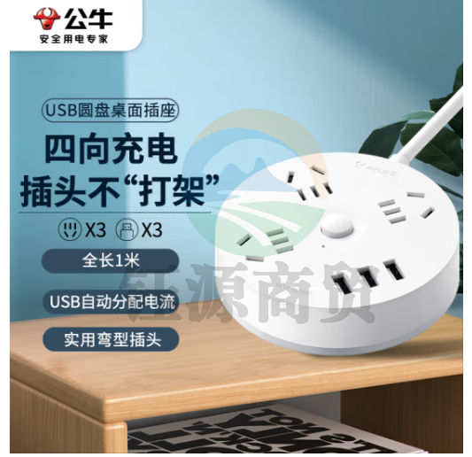 公牛(BULL)插座/插线板/插排/排插/拖线板 圆形插座 3usb接口+3孔总控 全长1米 GN-R203U