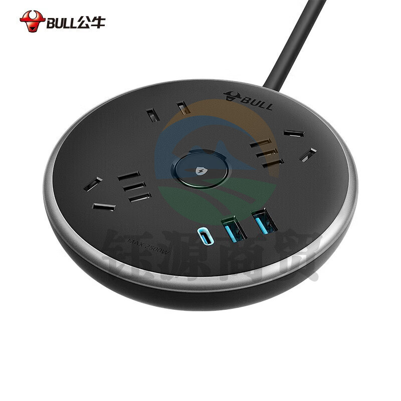 公牛(BULL) GN-R612U飞碟造型抗电涌防浪涌插座/插排/排插/接线板 3位总控 10A黑色 1.5米.