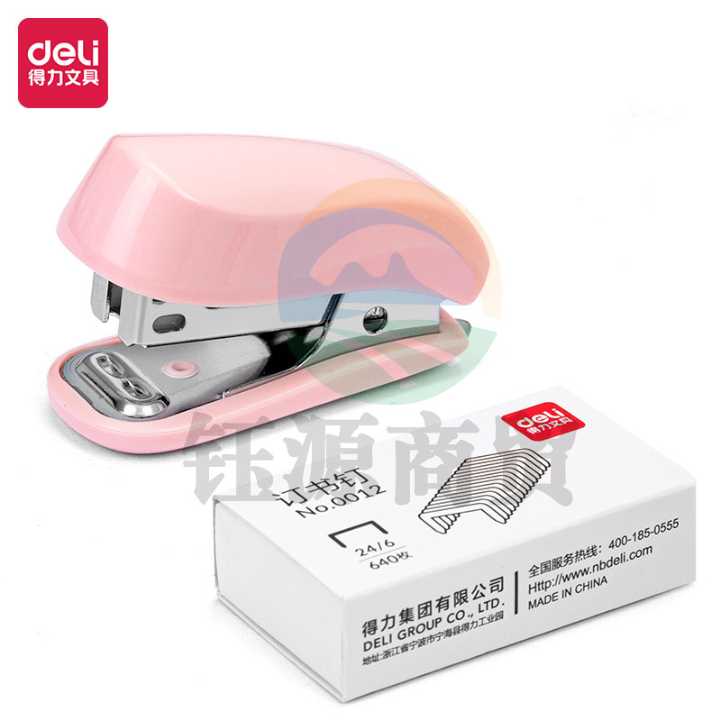 得力0255迷你订书机套装(粉色)(1订书机+1订书钉/卡)
