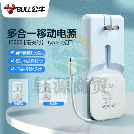 公牛 BULL GNV-PB310T 暮雪灰 公牛多合一移动电源//10000毫安时充电宝/线充三合一/Type-C输出