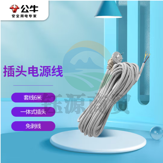 公牛(BULL)电源线带10A插头延长线压头电缆线铜芯国标铜丝软线护套线6米