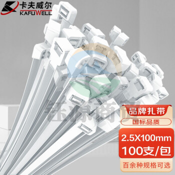 卡夫威尔 自锁式尼龙扎带小号工业扎丝 园艺扎线带 扎带理线带束线带捆扎带 2.5*100mm 白色 100支装 OT3057