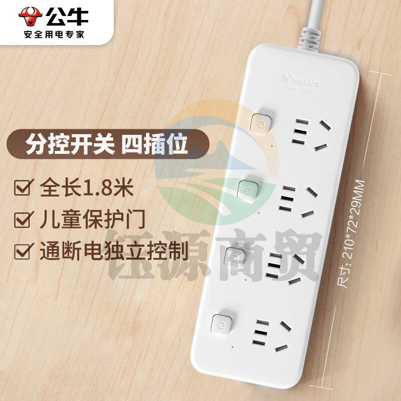 公牛(BULL) GN-B2043 拖线板 4位分控全长1.8米 独立开关