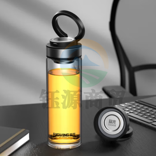 富光 G1707-DH-500便携提环玻璃杯 单层黑色500ml