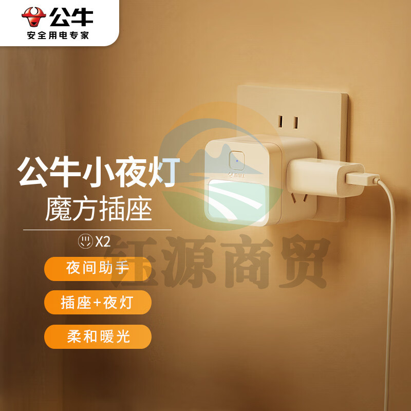 公牛(BULL) 小夜灯 床头灯魔方插座 插线板/插排/排插/接线板 2孔+夜灯 无线 GNV-UD2102